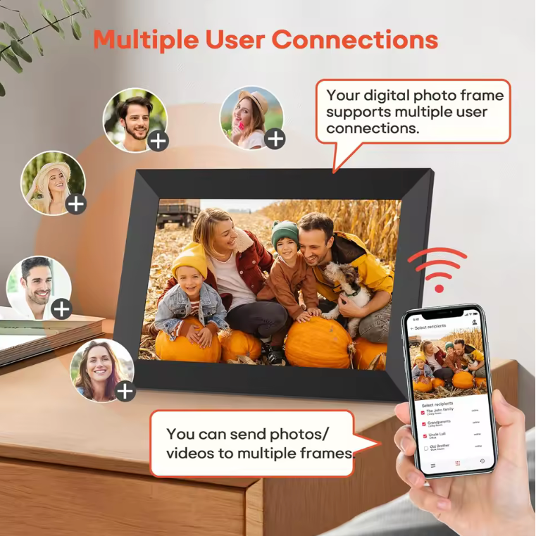 Keep your family connected with a frame that brings everyone together. Our digital picture frame lets friends and relatives send photos and videos directly from their phones, no matter where they are. With instant updates, your frame is always filled with the latest memories, milestones, and everyday moments that matter most.